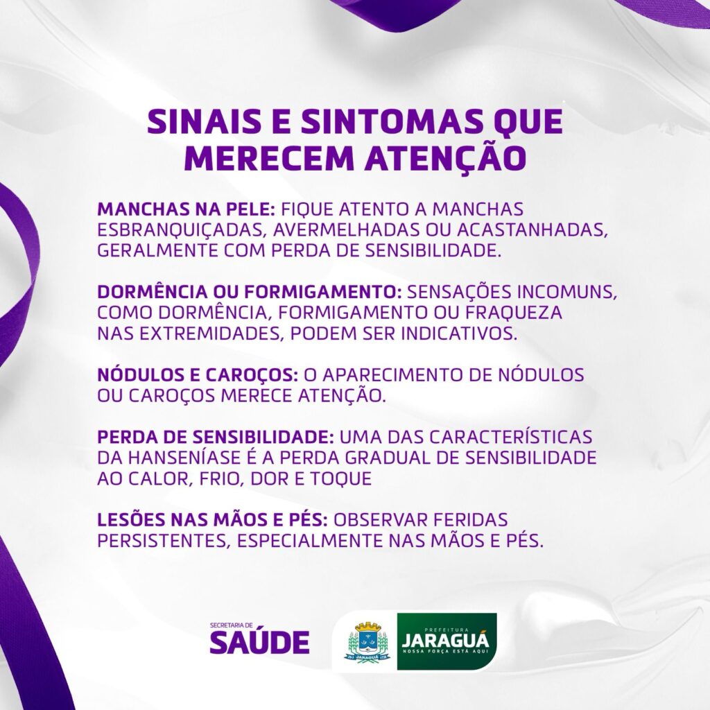 💜Fique atento aos sinais e sintomas para um diagnóstico precoce. Hanseníase tem cura!