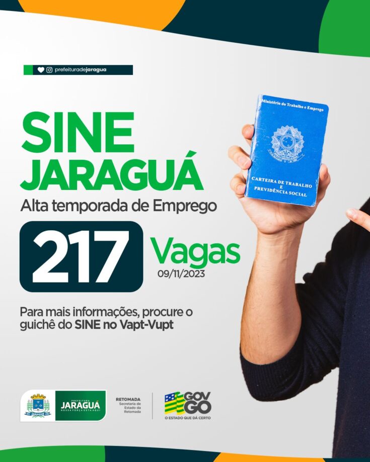 😱🤔 Já pensou em trabalhar a partir de hoje, com carteira assinada em empresas sérias e comprometidas? Então vem aqui, que sua a hora chegou, aqui em Jaraguá tem mais de 200 oportunidades de emprego te esperando no guichê do SINE, no Vapt-Vupt. 😁✅
