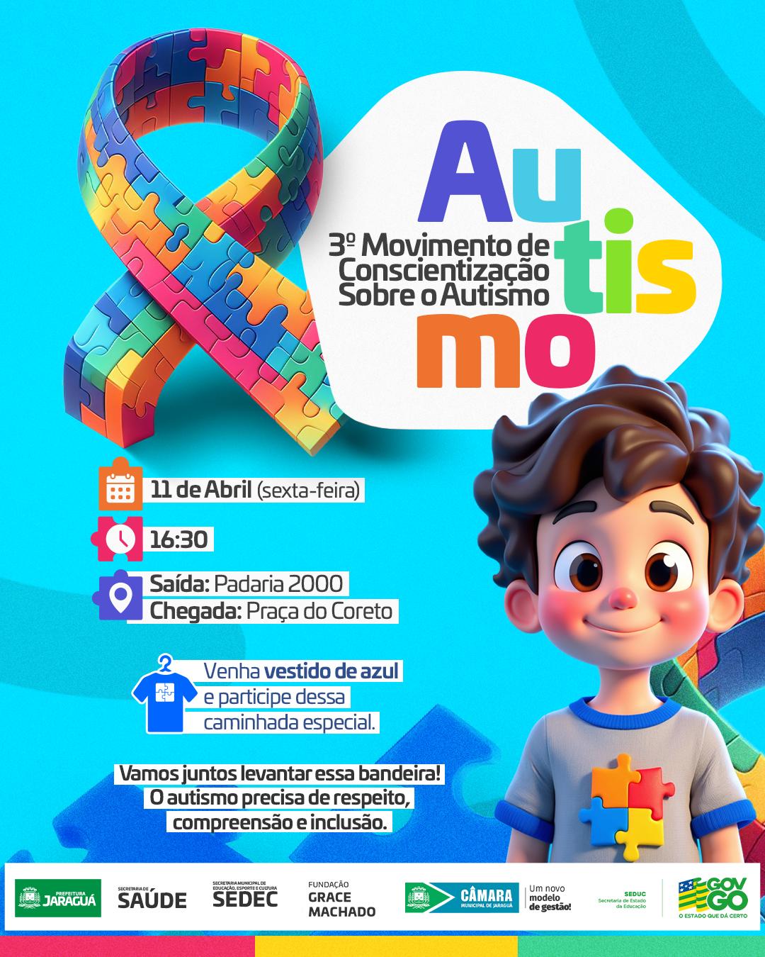 No dia 11 de abril (sexta-feira), às 16h30, teremos o 3º Movimento de Conscientização sobre o Autismo! 🧩✨