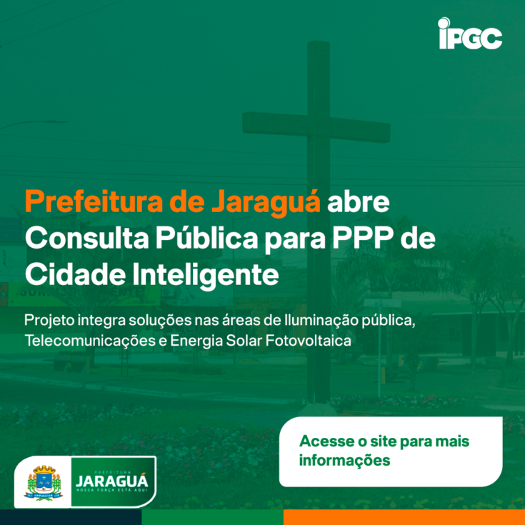 Está aberta a consulta pública para a contratação de Parceria Público-Privada em Jaraguá. O Projeto de Cidade Inteligente envolve os serviços de eficientização, operação e manutenção do parque de iluminação pública, além de rede de telecomunicações e miniusina de energia solar para os prédios públicos da cidade.