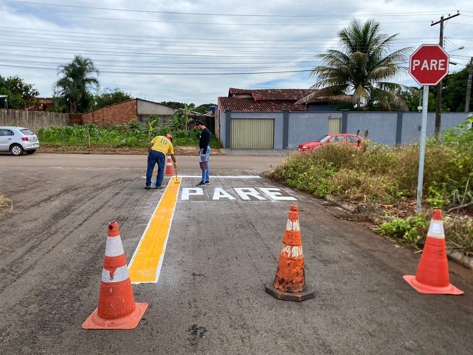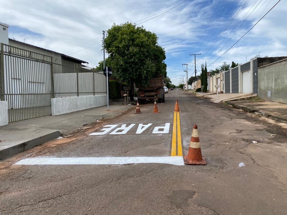 Registramos uma das frentes de trabalho que seguirão por todo o setor Jardim Aeroporto ll, com sinalização de pare em placas e em pinturas. Confira o andamento!