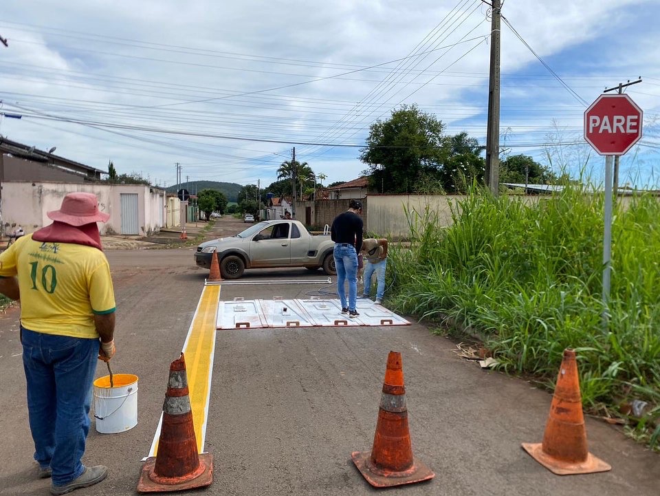 Registramos uma das frentes de trabalho que seguirão por todo o setor Jardim Aeroporto ll, com sinalização de pare em placas e em pinturas. Confira o andamento!