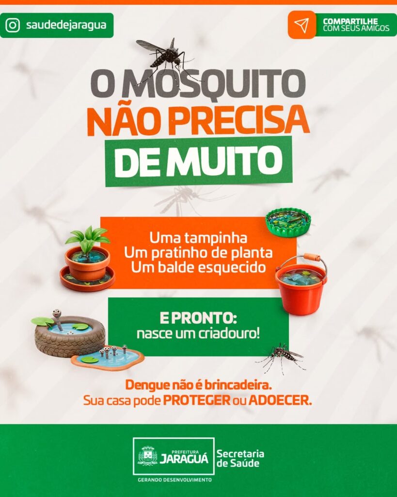 A dengue começa onde menos se espera. Uma tampinha esquecida, um pratinho de planta, um balde no quintal… e pronto: nasce um criadouro do mosquito. A gestão tem feito a sua parte, com ações contínuas de prevenção e combate. Mas sem a colaboração de cada morador, não existe combate à dengue. Aproveite o tempo em casa para dar uma olhadinha no quintal, nos fundos, nas calhas e nos cantinhos esquecidos. Água parada é perigo real. Sua casa pode proteger ou adoecer. Faça a sua parte. Combater a dengue é dever de todos. #Dengue #CombateÀDengue