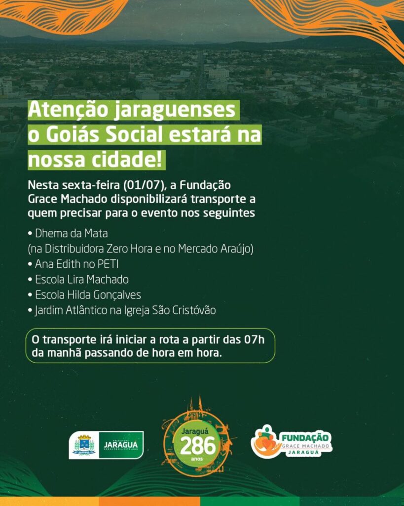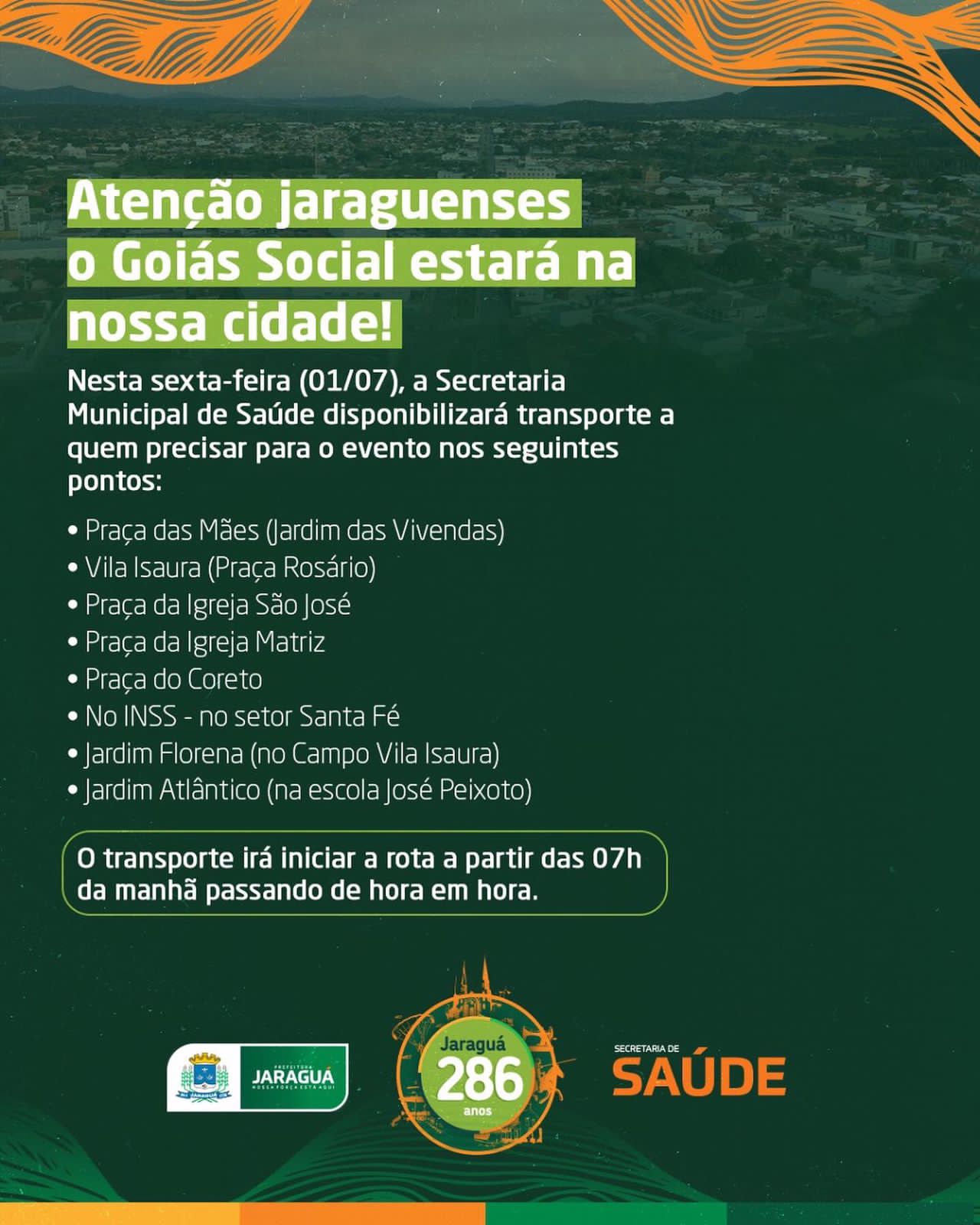 É amanhã o nosso Goiás Social e teremos vários serviços de saúde sendo ofertados a todos. Pensando no bem estar da população a Secretaria de Saúde e a Fundação Grace Machado em parceira irão disponibilizar transporte a quem precisar para o evento nos seguintes pontos: