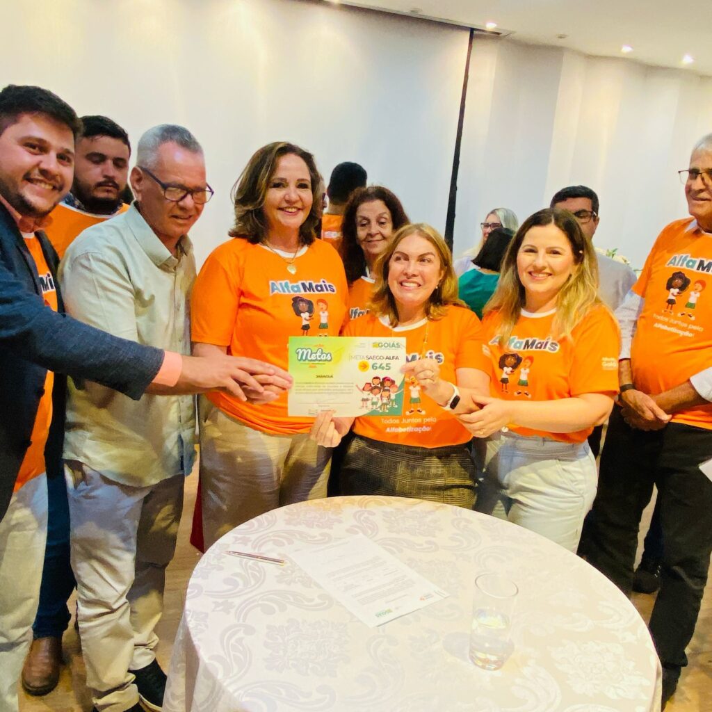 Na manhã desta quarta-feira (23), a Educação de Jaraguá deu mais um passo importante. Em Rubiataba, foi assinada a pactuação de metas do Programa AlfaMais, com a presença da Secretária de Estado da Educação, Fátima Gavioli, do Secretário de Educação, Tiãozinho Soares, e da Vereadora Rauliveira Araújo, que representaram o Prefeito Paulo Vitor.