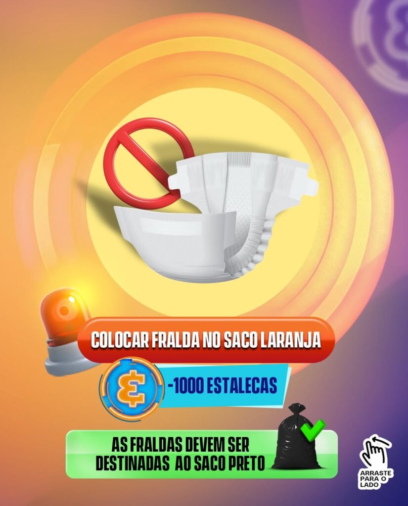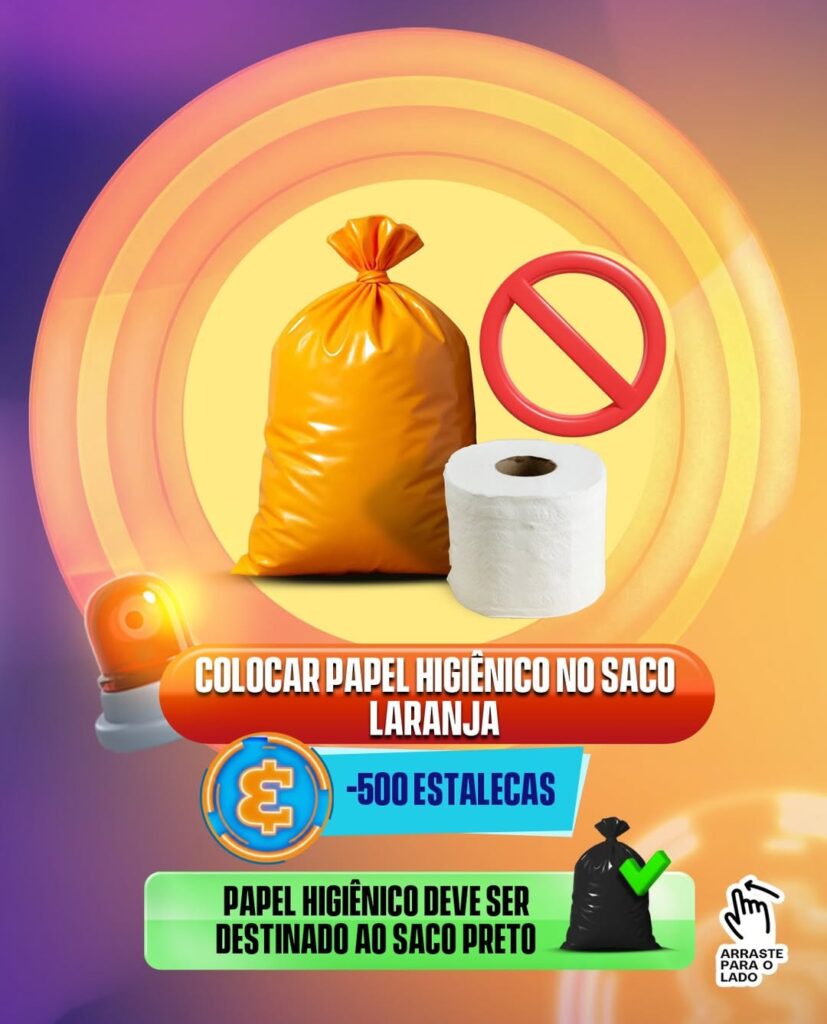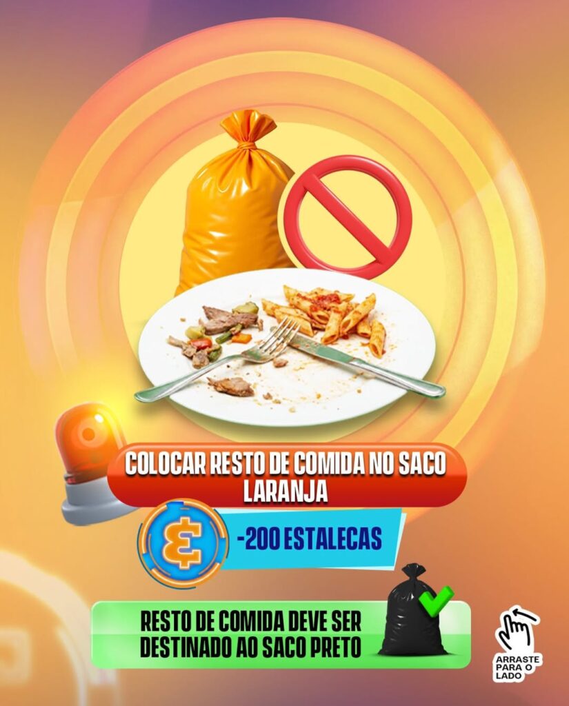 Atenção, moradores da cidade mais sustentável do Brasil! No jogo da reciclagem, fique atento para manter seu saldo de estalecas positivo. Lembre-se: uma separação errada pode contaminar todo o grupo e prejudicar a coleta seletiva de Jaraguá. Vamos jogar limpo?