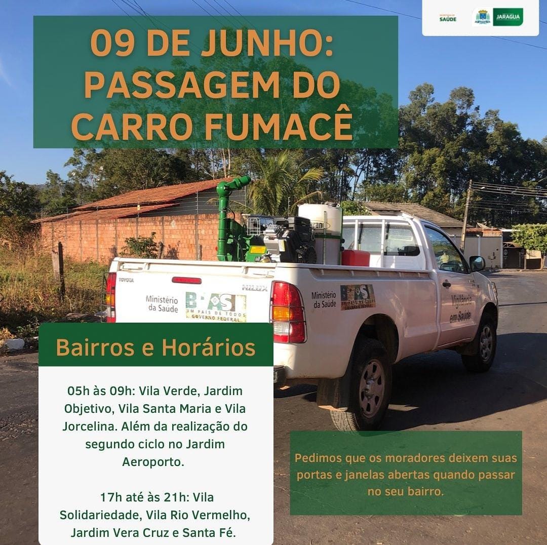 Amanhã (09/06) o carro Fumacê irá passar pelos seguintes bairros: