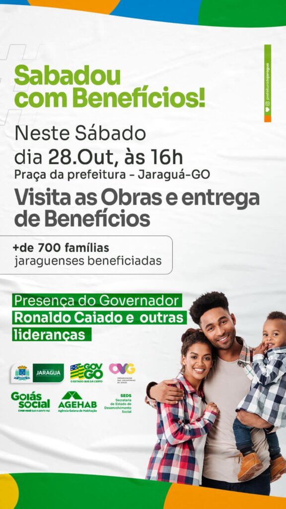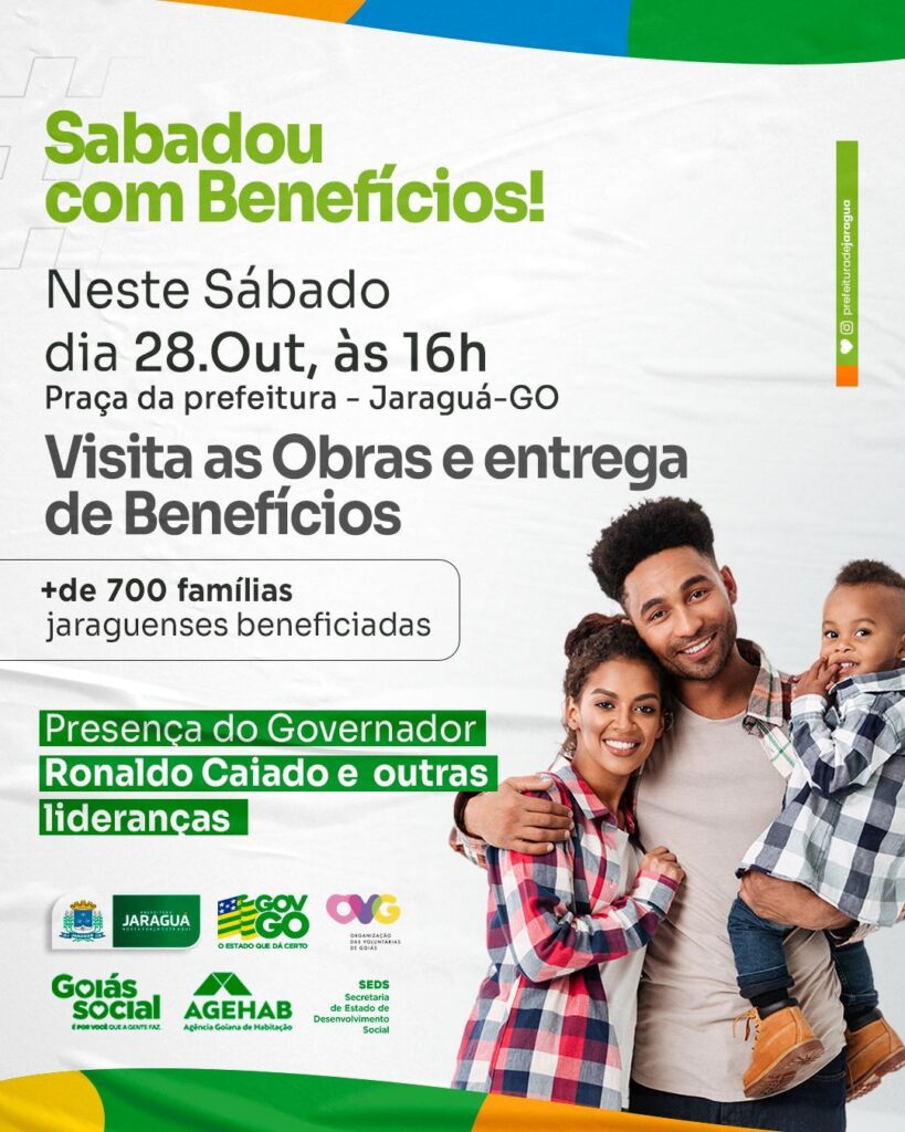 Convite Especial! Amanhã, sábado, às 16h, receberemos o Governador Ronaldo Caiado e outras lideranças na praça da prefeitura para a entrega de benefícios e visita às obras.