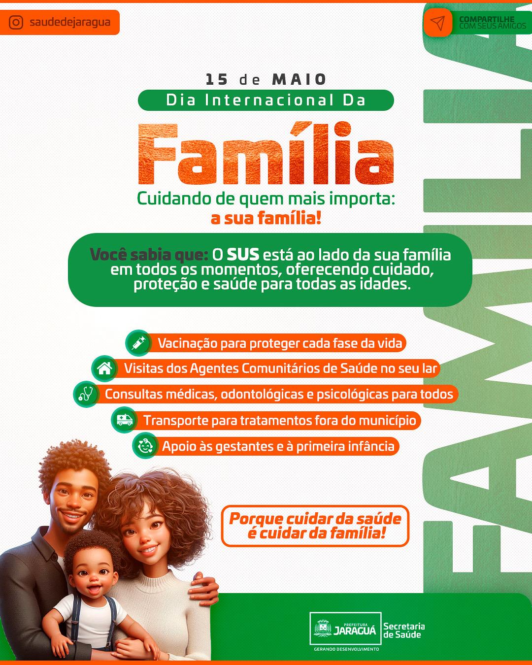 No Dia Internacional da Família, celebramos os laços que nos fortalecem e nos inspiram a cuidar melhor de quem amamos. O SUS está ao lado da sua família em todos os momentos, oferecendo: