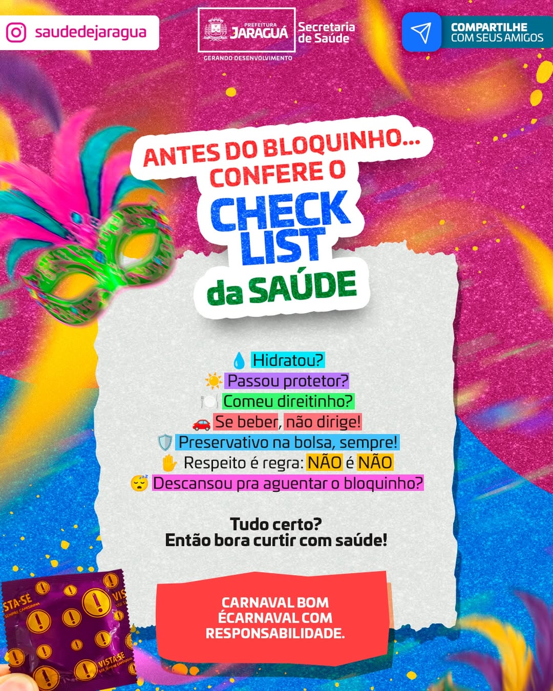 Aproveite a folia com responsabilidade, porque Carnaval bom é Carnaval com saúde.