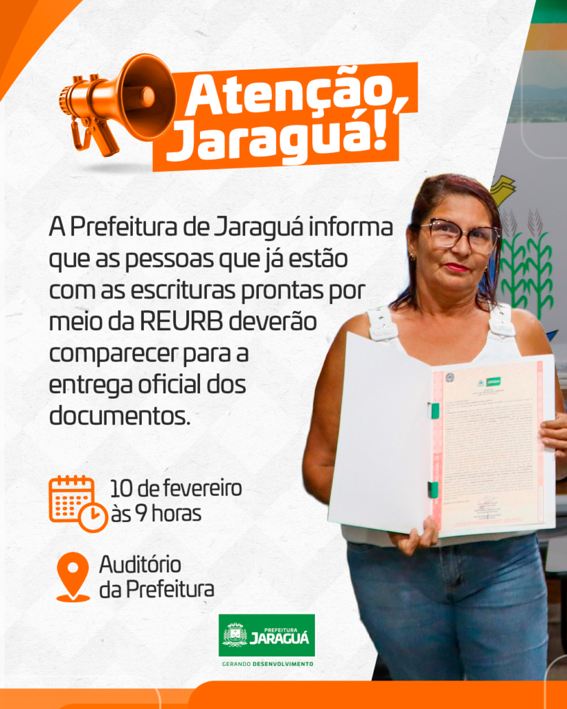 A Prefeitura informa que os moradores que já estão com as escrituras prontas por meio da REURB devem comparecer para a entrega oficial dos documentos.