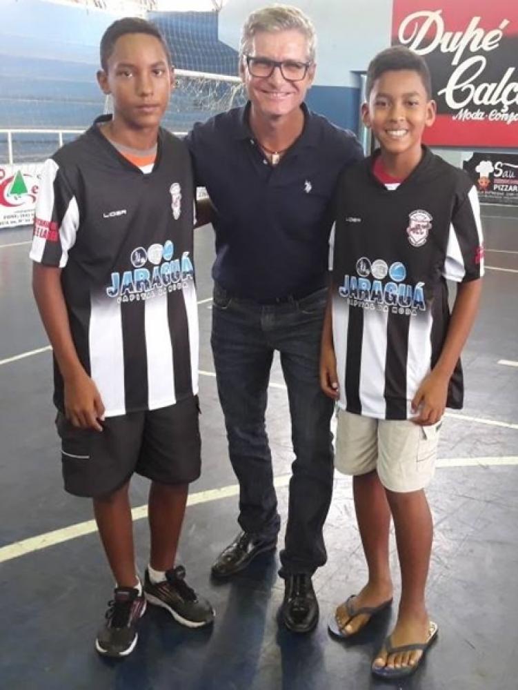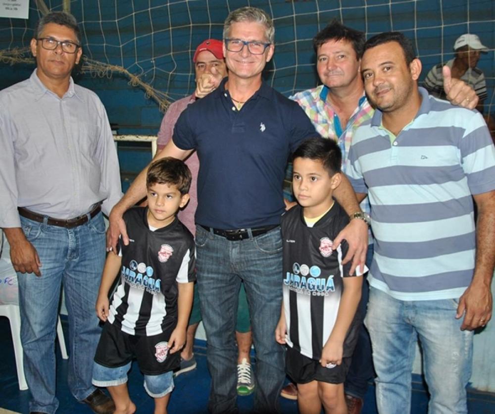 Além do lançamento oficial, o Prefeito esteve acompanhado do Subsecretário de Esportes Vinicius Leite e do Presidente do Jaraguá Esporte Clube, Moisés Assunção, realizando a entrega dos kits de uniformes para toda a criançada que fará parte de mais este projeto idealizado pela atual gestão.