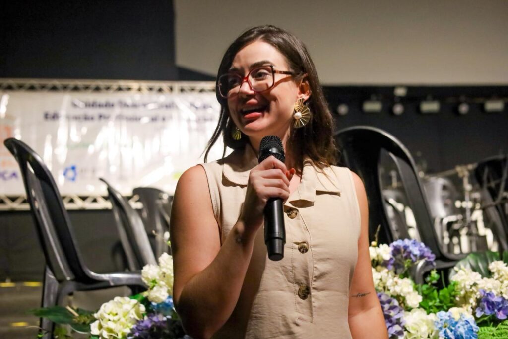 A noite contou com a presença da superintendente de Capacitação e Formação Tecnológica da SECTI, Janaina Magatão, e do secretário municipal de Educação e Cultura, Sebastião Soares.