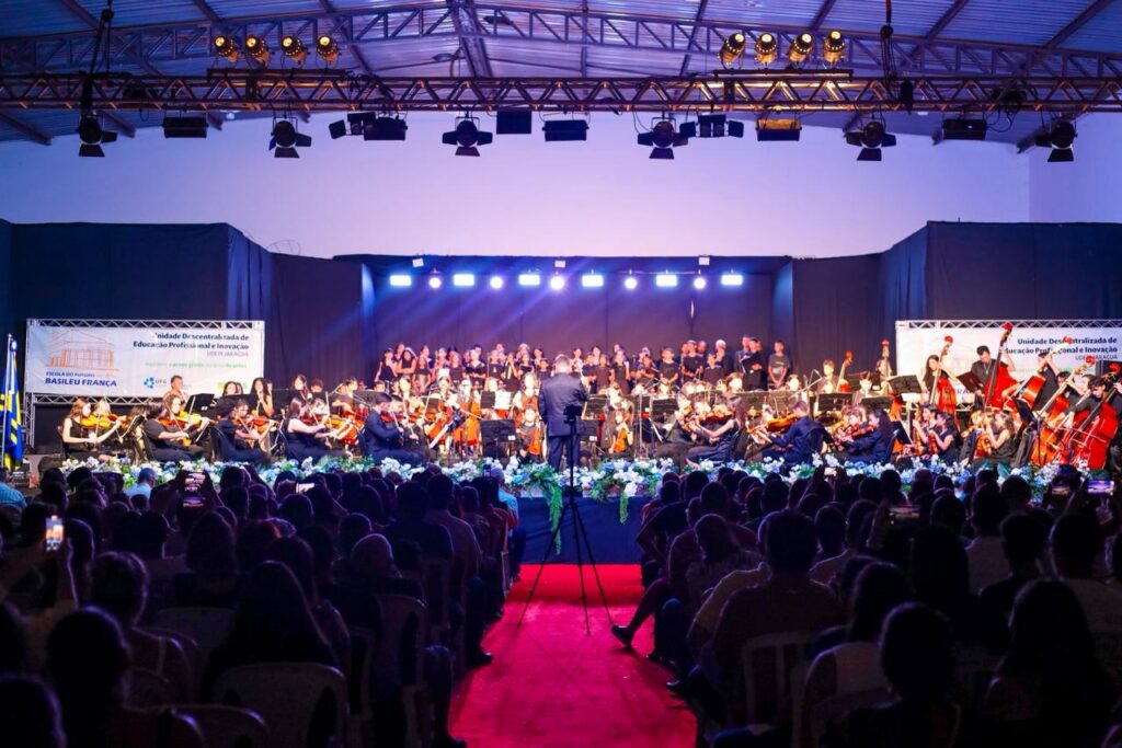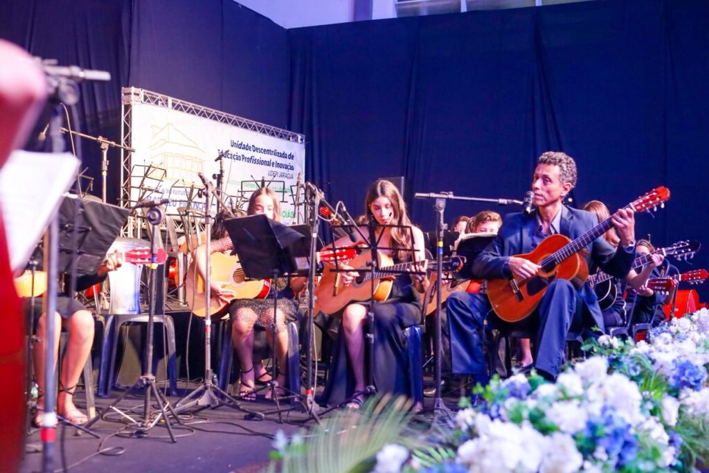Aconteceu na noite de ontem (17/12) mais uma apresentação marcante: o Concerto das Orquestras de Violão e Orquestra Sinfônica, da Escola do Futuro do Estado de Goiás em Artes Basileu França – UDEPI Jaraguá.