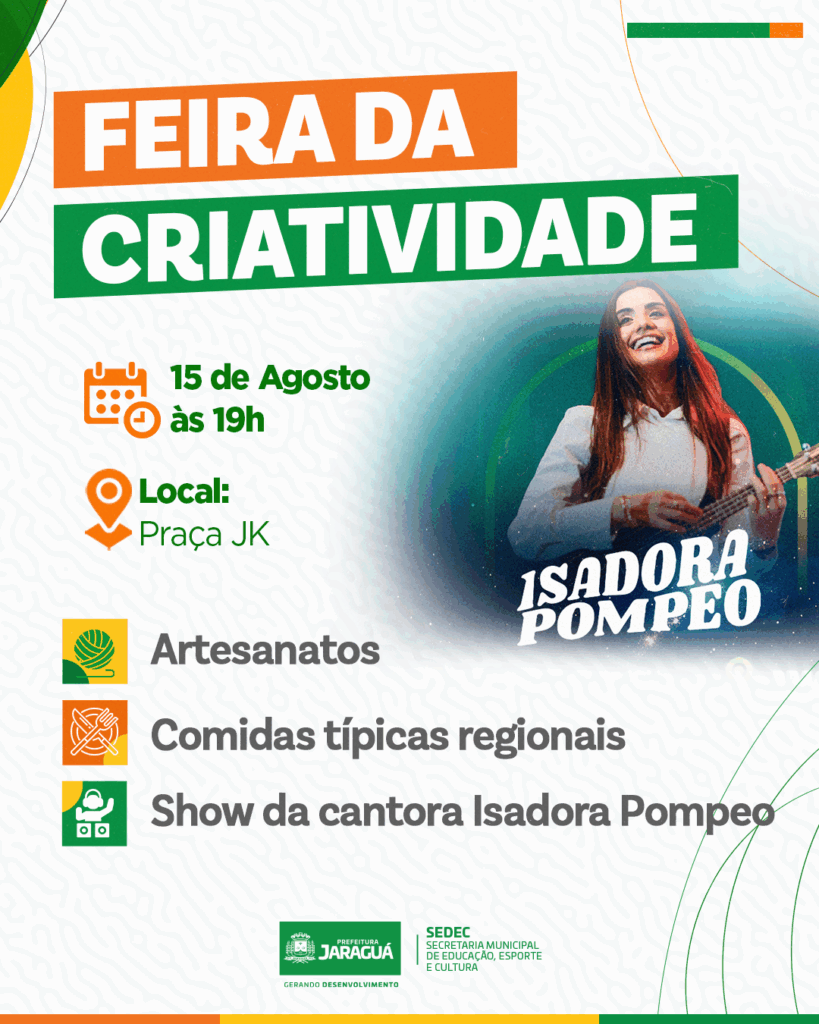 No dia 15 de agosto, a partir das 19h, na Praça JK, a Feira oferecerá uma experiência única para o público, com artesanato, sabores típicos e muita cultura local.
