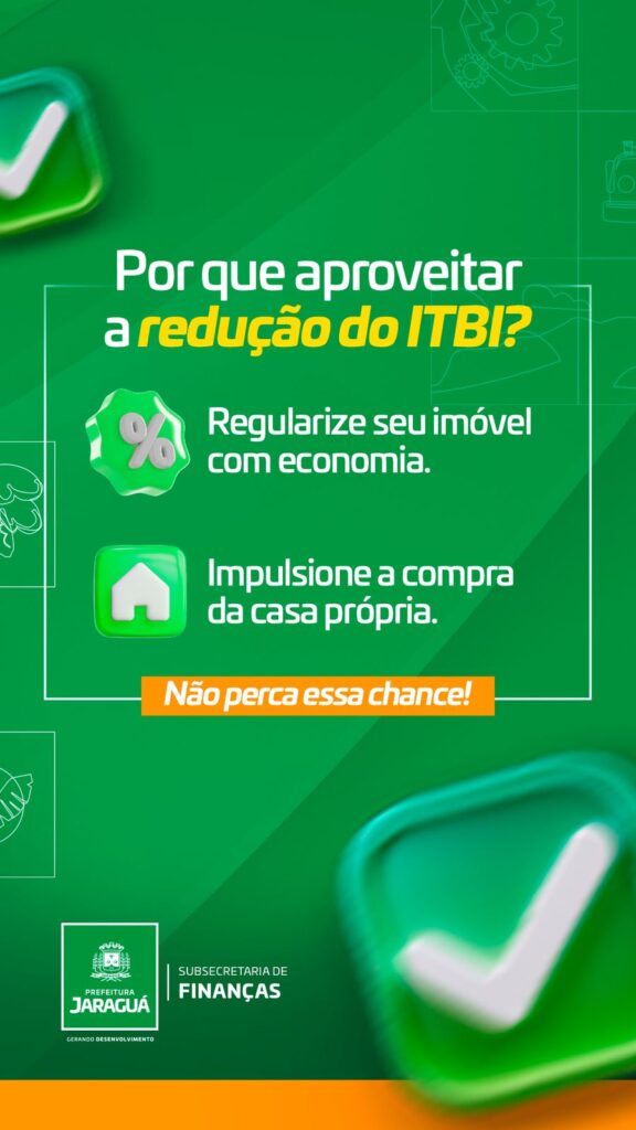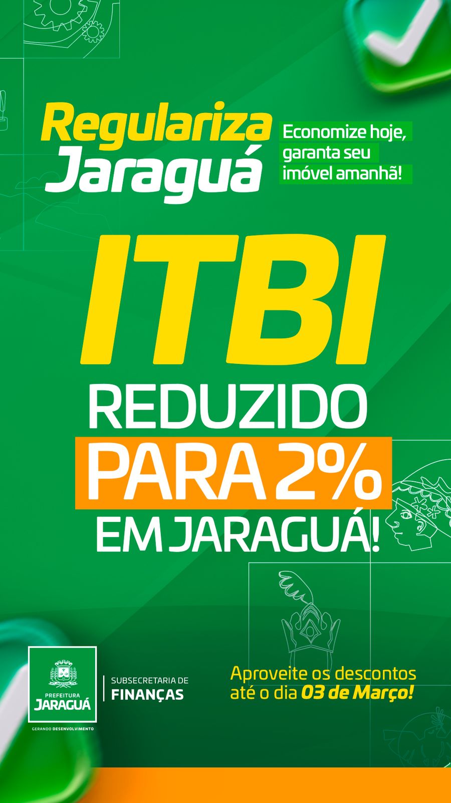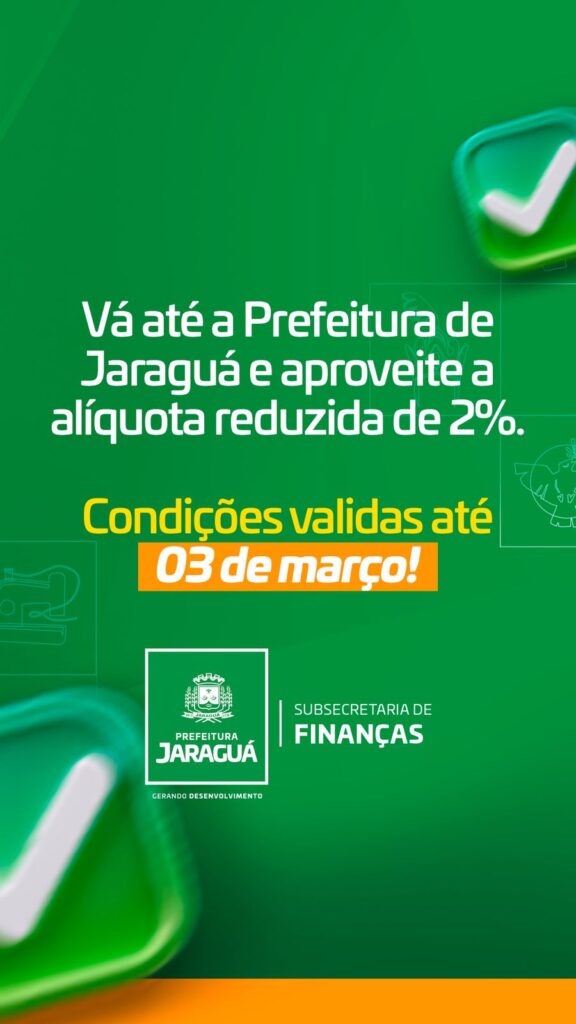 📍 Dirijam-se à Prefeitura de Jaraguá e aproveite a alíquota reduzida de 2%.