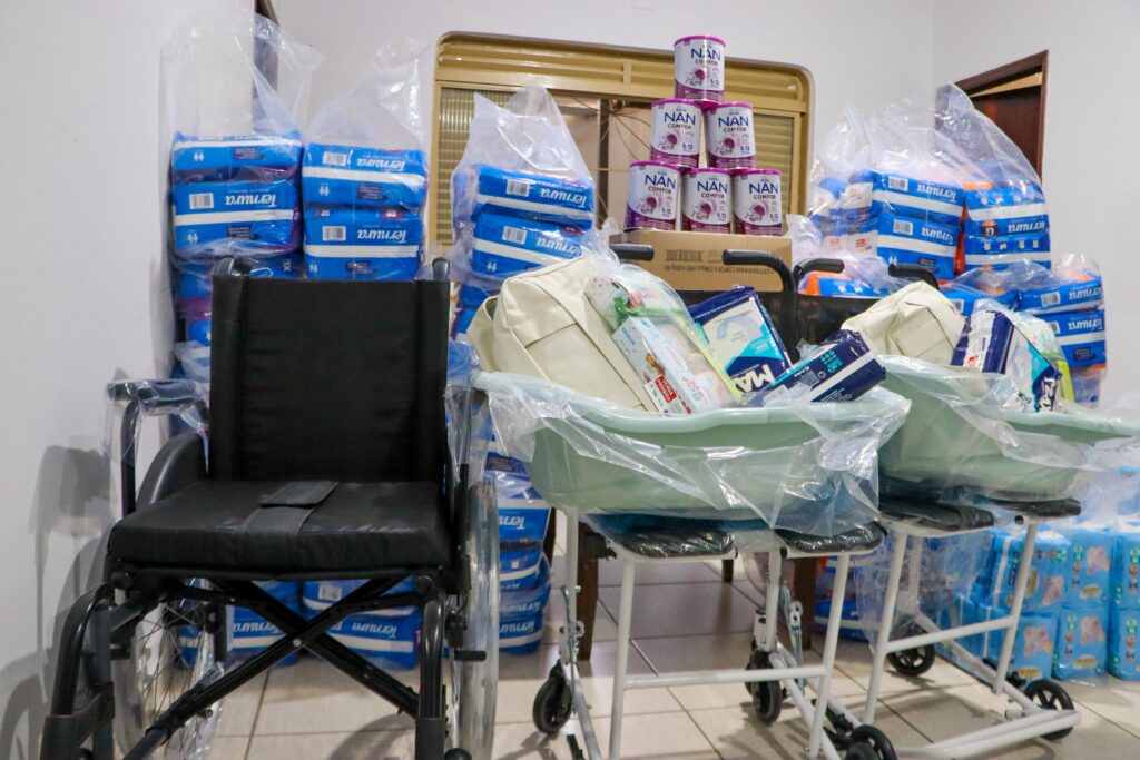 Hoje, mais de 260 benefícios foram entregues a quem realizou o cadastro no CRAS, incluindo cadeiras de rodas, cadeiras higiênicas, fraldas geriátricas e infantis, leite NAN e outros itens essenciais.