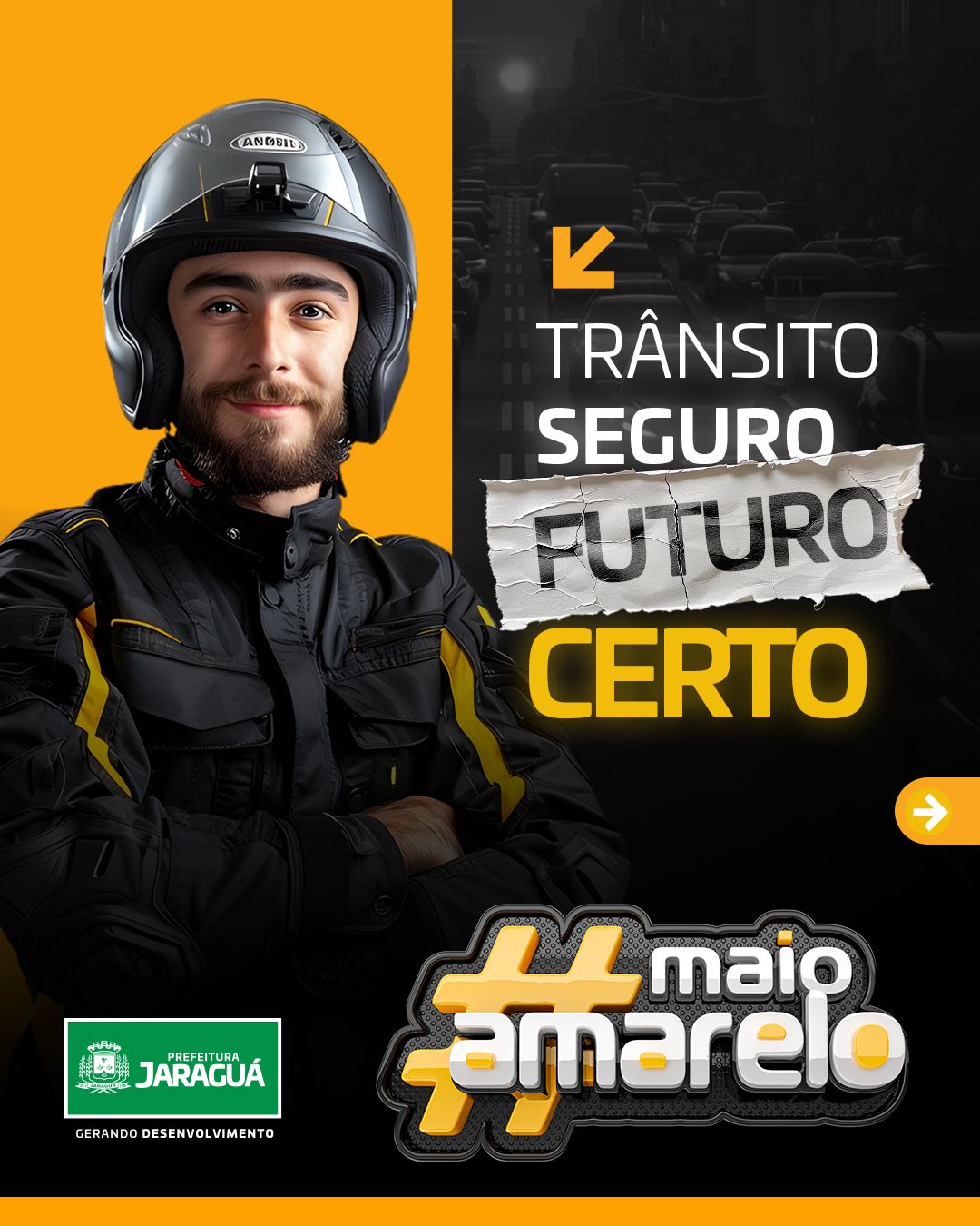 A campanha Maio Amarelo tem como foco a conscientização sobre a segurança no trânsito, com ênfase na prevenção de acidentes e na valorização da vida.