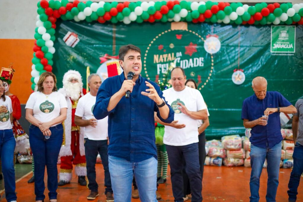 hã desta segunda-feira (22), mais de 1.500 famílias jaraguenses foram contempladas com a entrega das Ceias de Natal, em uma ação que reforça o compromisso com a solidariedade, o acolhimento e a atenção às pessoas que mais precisam.