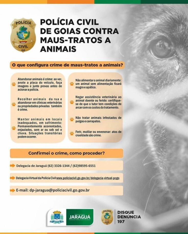 Ao presenciar maus-tratos, denuncie ligando 3326-1344, (62) 98595-6551 ou disque 197!