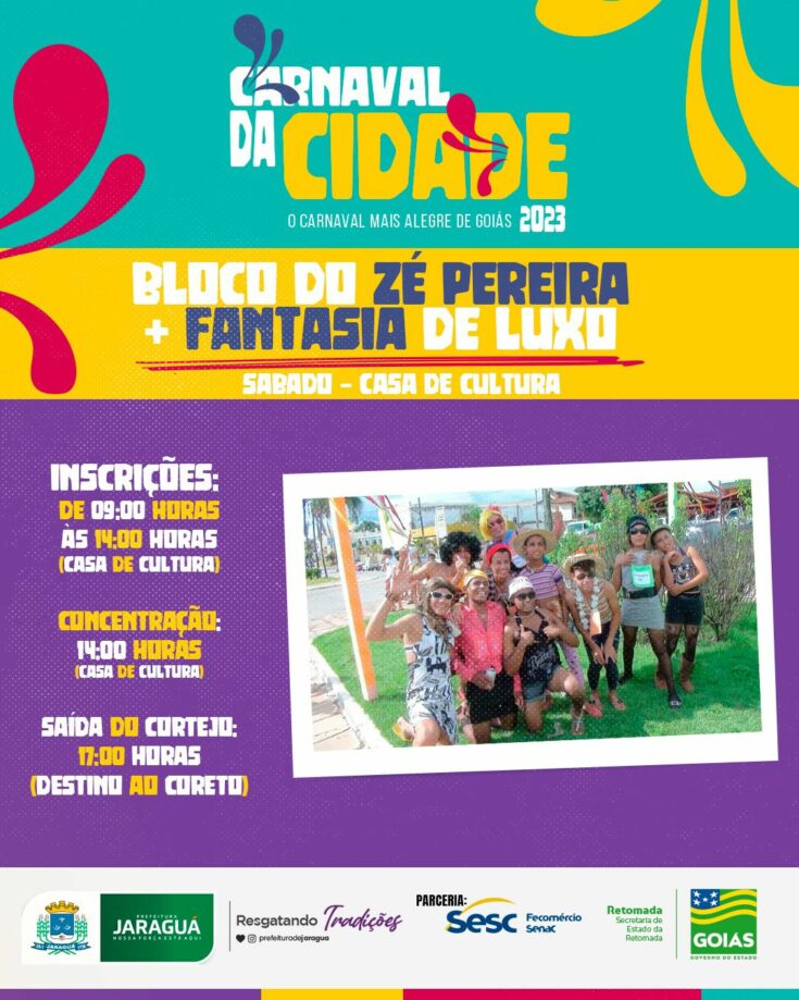 Importante lembrar que as inscrições serão feitas das 09:00 às 14:00 horas na Casa de Cultura, a concentração será às 14:00 horas, embalada pelo som da Banda Fá Maior, e o cortejo saíra às 17:00 horas com destino ao coreto.
