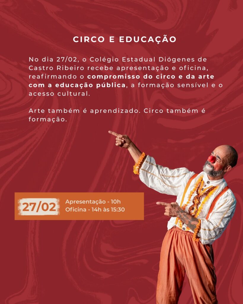 Além das apresentações nas escolas, fortalecendo a arte e a educação pública, teremos sessões abertas ao público: