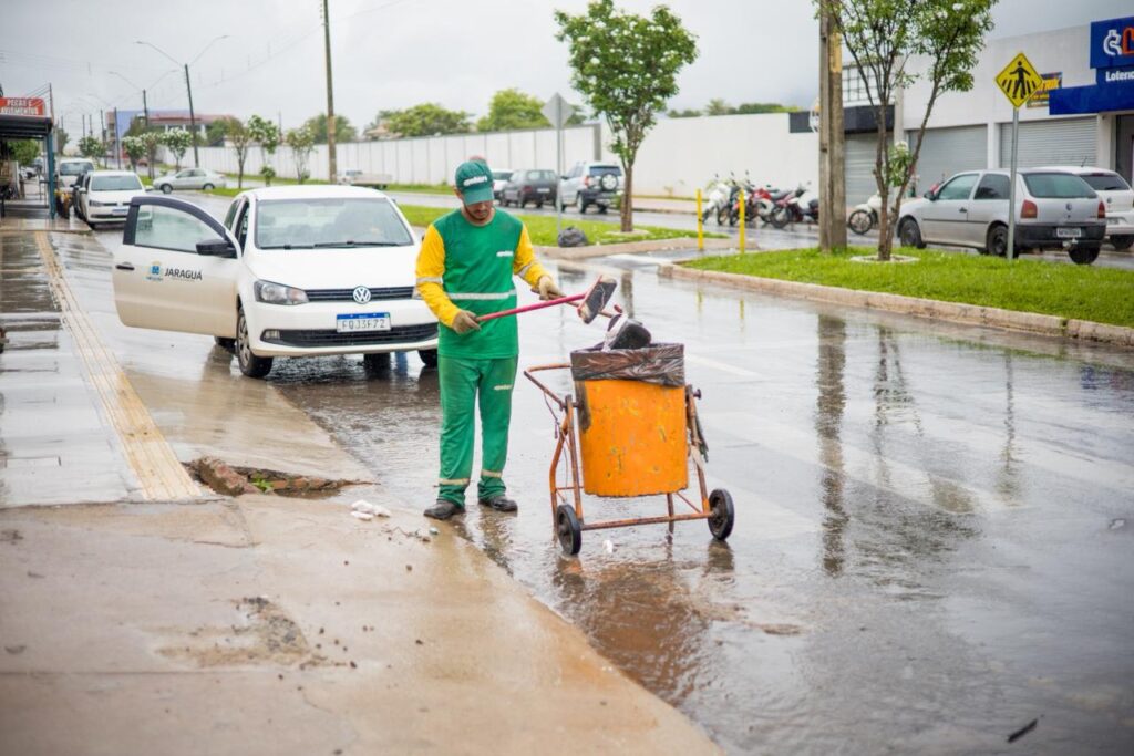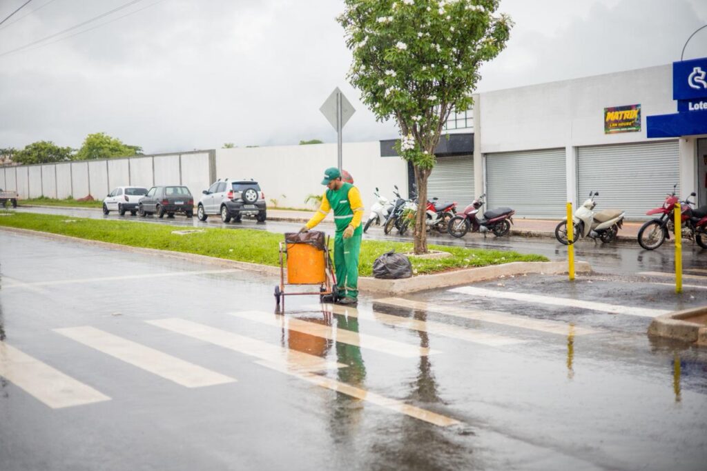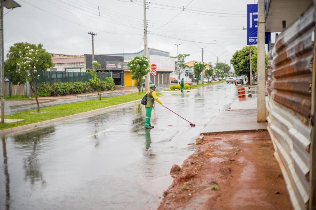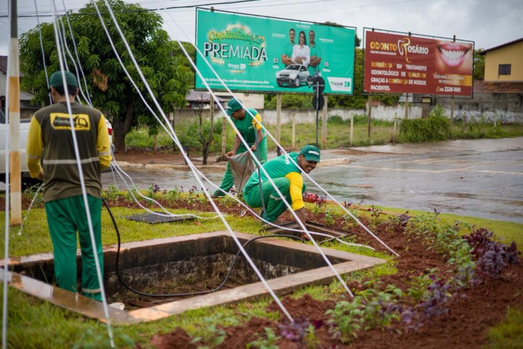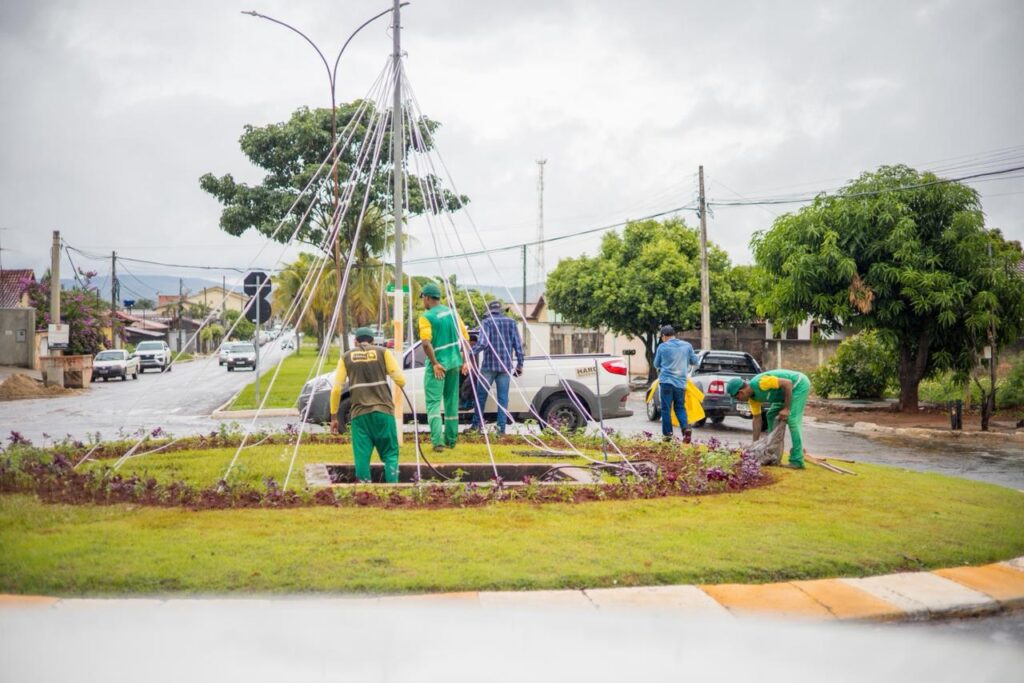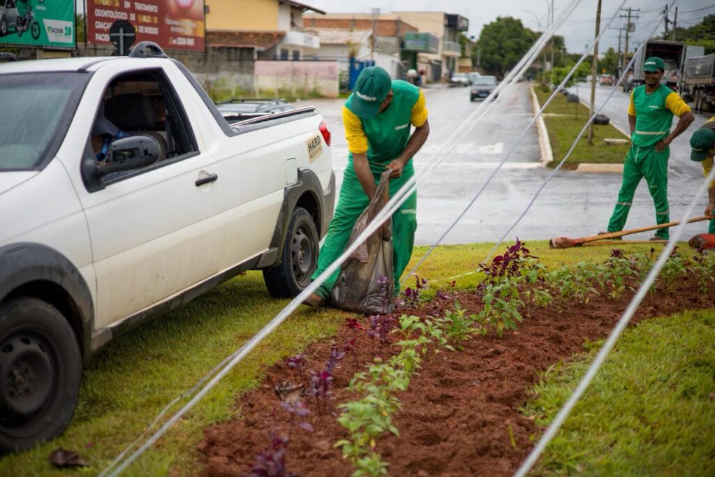 Também foram realizados serviços de varrição na Av. Bernardo Sayão e jardinagem na rotatória da Av. Moacir Rios.
