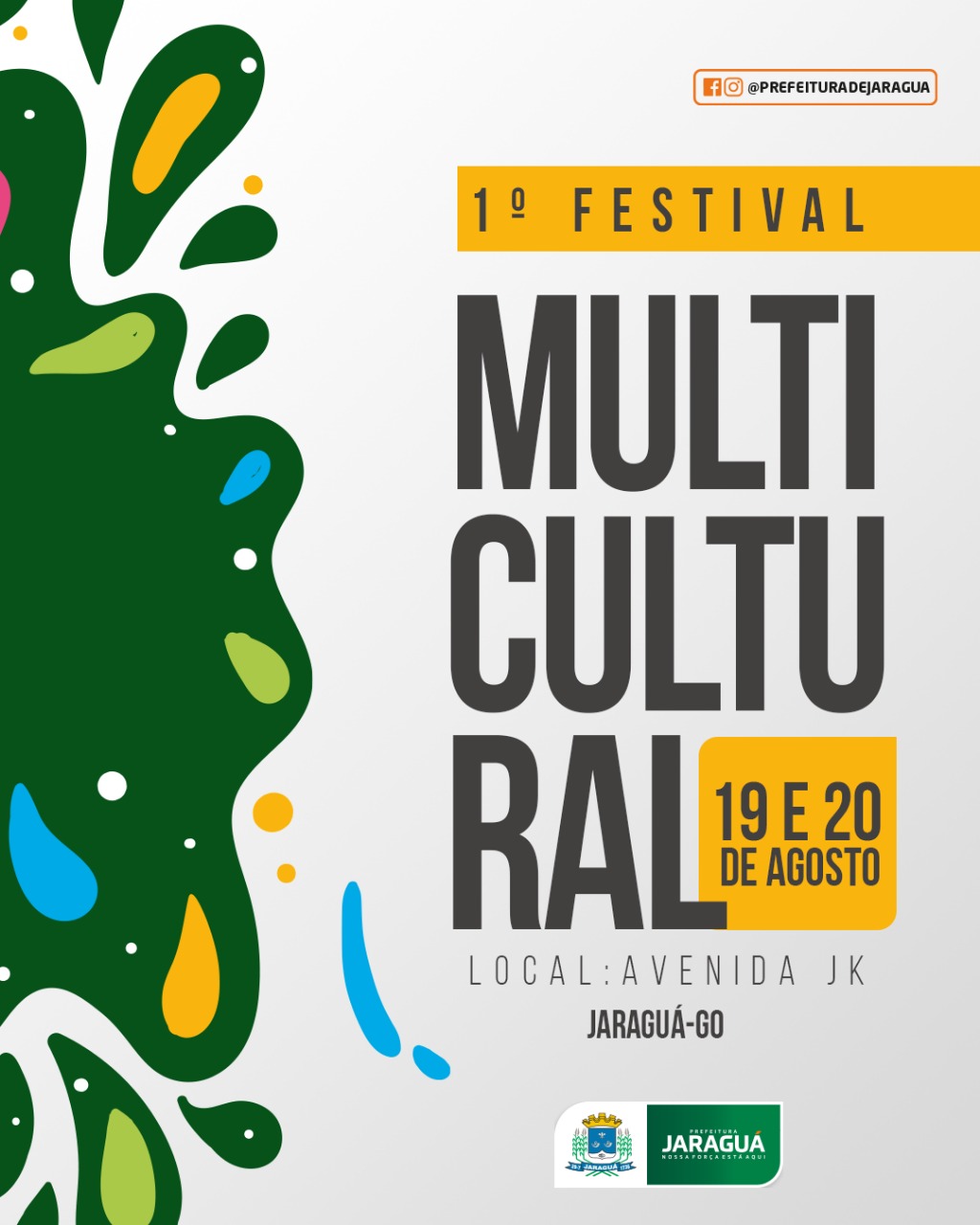 A Prefeitura de Jaraguá juntamente com a Superintendência de Cultura abre oficialmente a partir de hoje, as inscrições para a primeira edição do Festival Multicultural, projeto este, que tem como objetivo focalizar o trabalho dos instrumentistas e intérpretes que se dedicam aos mais diversos estilos musicais, além de dar visibilidade as mais diversas expressões culturais regionais, por meio de apresentações artísticas e/ou exposições.