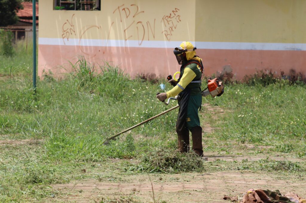 Durante todo o dia de hoje, várias equipes estão por diversos setores da nossa cidade realizando os serviços de roçagem, poda e capina. Em destaque, durante o período da tarde uma das frentes estão em ação no centro poliesportivo!