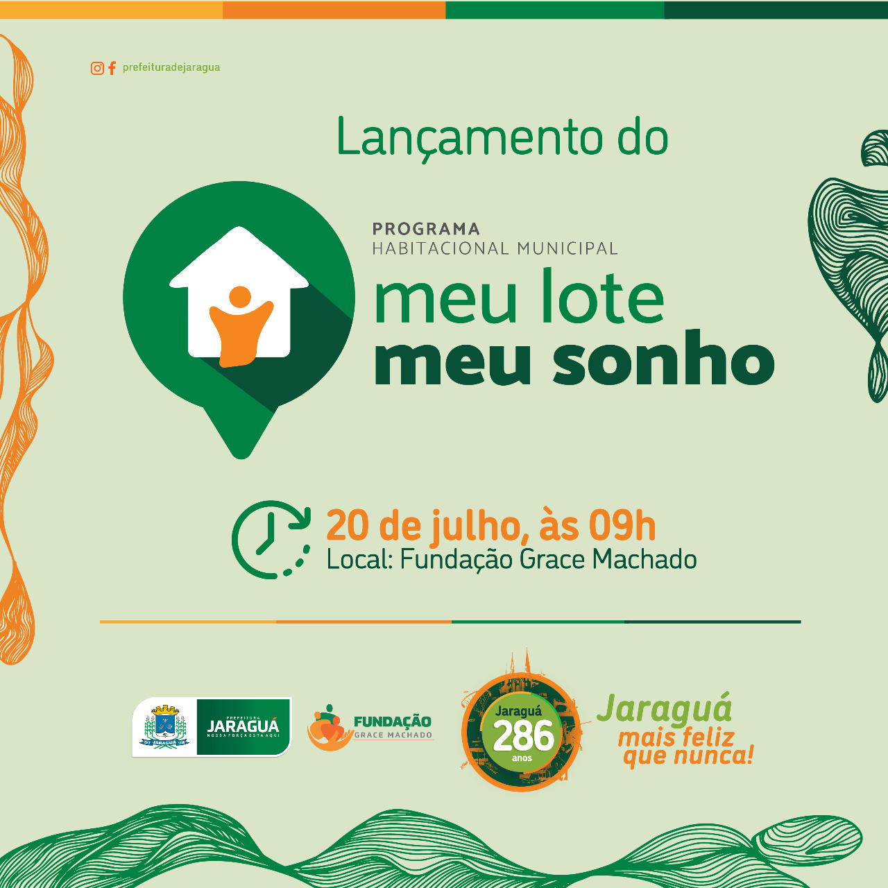 Mais um compromisso saindo do papel e se tornando realidade e benefício para nossa população. Em comemoração aos 286 anos de Jaraguá, temos a honra de convidar a você e toda sua família para participar do lançamento do programa habitacional Meu Lote, Meu Sonho.
