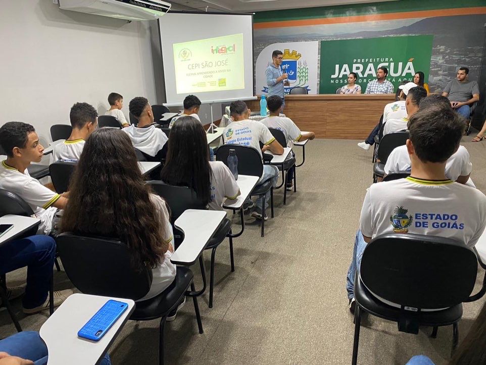 Recebemos agora há pouco aqui no auditório do Palácio do Sol, sede da prefeitura, uma comitiva de alunos do primeiro ano do ensino médio do CEPI São José, liderada pelo professor Wanderson Reis.
