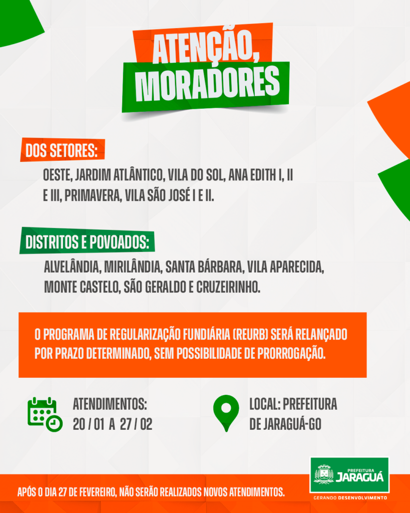 O Programa de Regularização Fundiária (REURB) será relançado por prazo determinado, sem possibilidade de prorrogação.