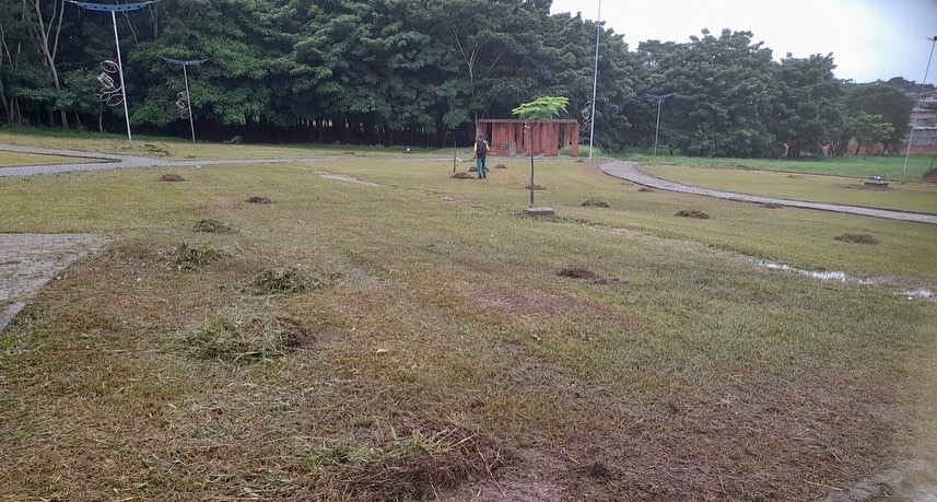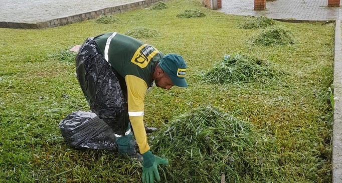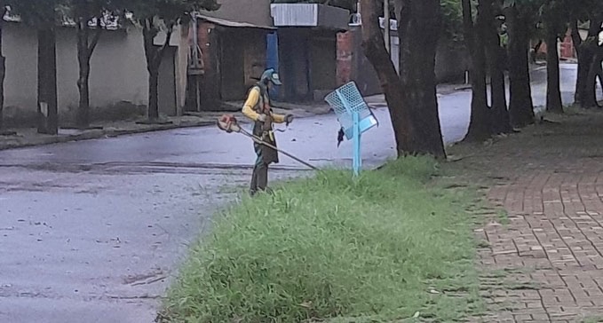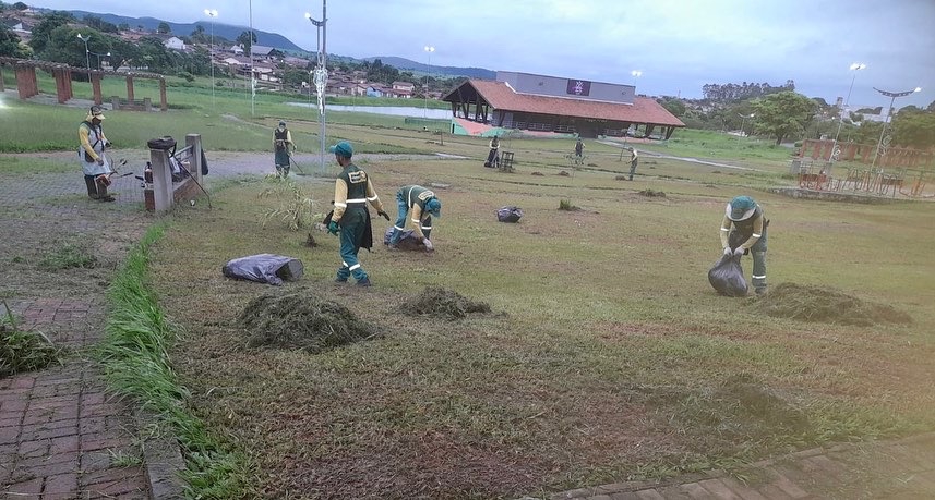 Recebemos o registro de uma das equipes de jardinagem, realizando a roçagem na extensão do Lago da Vila Isaura e em toda orla.