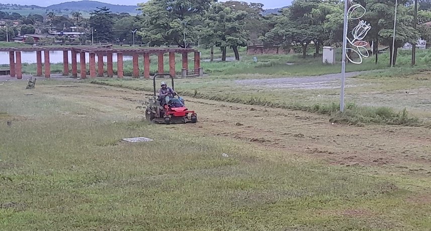 Recebemos o registro de uma das equipes de jardinagem, realizando a roçagem na extensão do Lago da Vila Isaura e em toda orla.