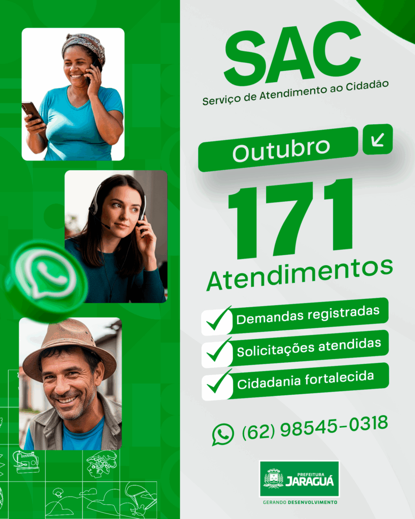 No mês de outubro, o Serviço de Atendimento ao Cidadão (SAC) registrou 171 atendimentos, garantindo resposta às demandas enviadas pela população.