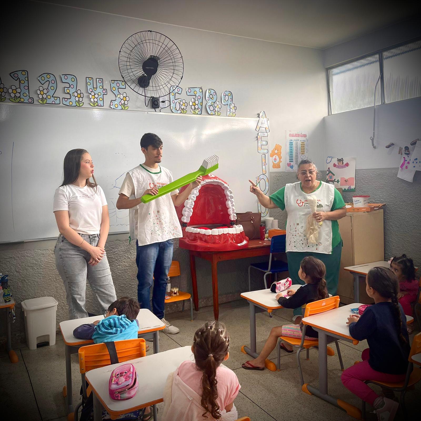 🦷💙Saúde bucal começa na infância! Você sabia que ensinar bons hábitos desde cedo faz toda a diferença para a saúde dos dentes? Pensando nisso, a Coordenação de Saúde Bucal, em parceria com o Programa Saúde na Escola (PSE), esteve na Escola Municipal Affonsina de Freitas para uma ação especial de educação em saúde bucal! 📚✨