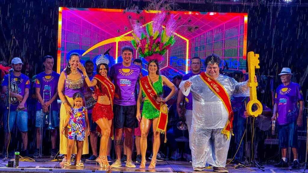 O prefeito Paulo Vitor Avelar também realizou a entrega simbólica da chave da cidade ao Rei Momo e a coroação da Rainha do Carnaval 2026, marcando oficialmente a abertura da festa e reforçando o compromisso da gestão com a cultura e as tradições do nosso município.