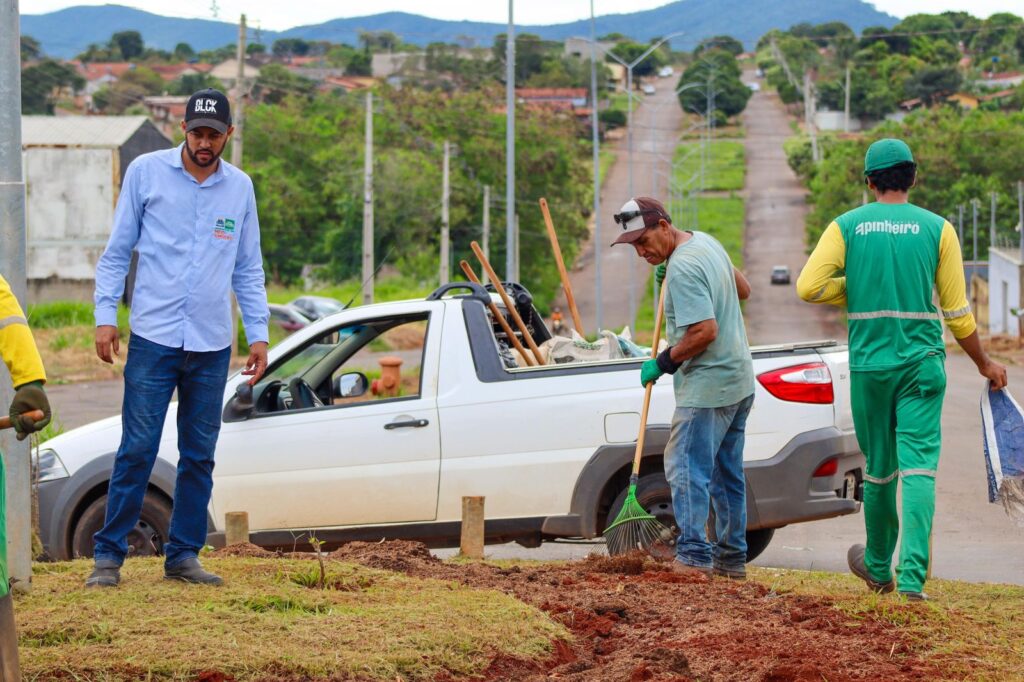 Nossas equipes estão empenhadas com várias frentes de trabalho espalhadas por toda a cidade, realizando os serviços de mutirão de limpeza no Setor Oeste, recuperação de erosão na Rua das Camélias, aterramento para manilhamento e plantio na rotatória do Cesario da Mata, garantindo uma cidade mais limpa, verde e bem estruturada.