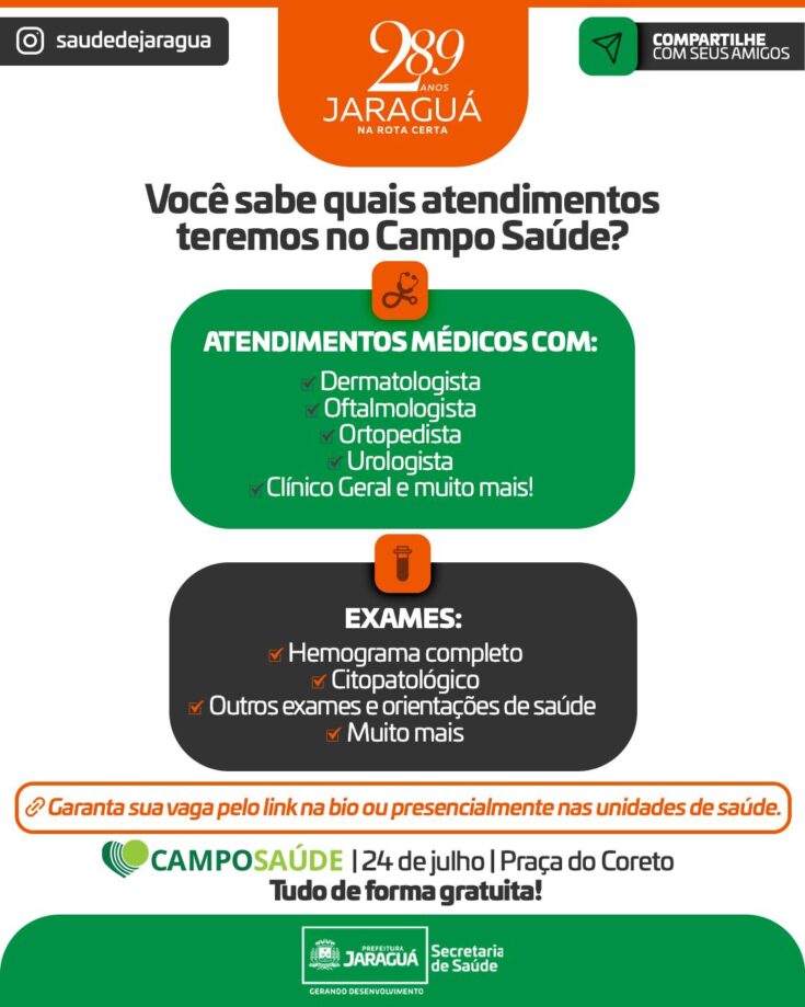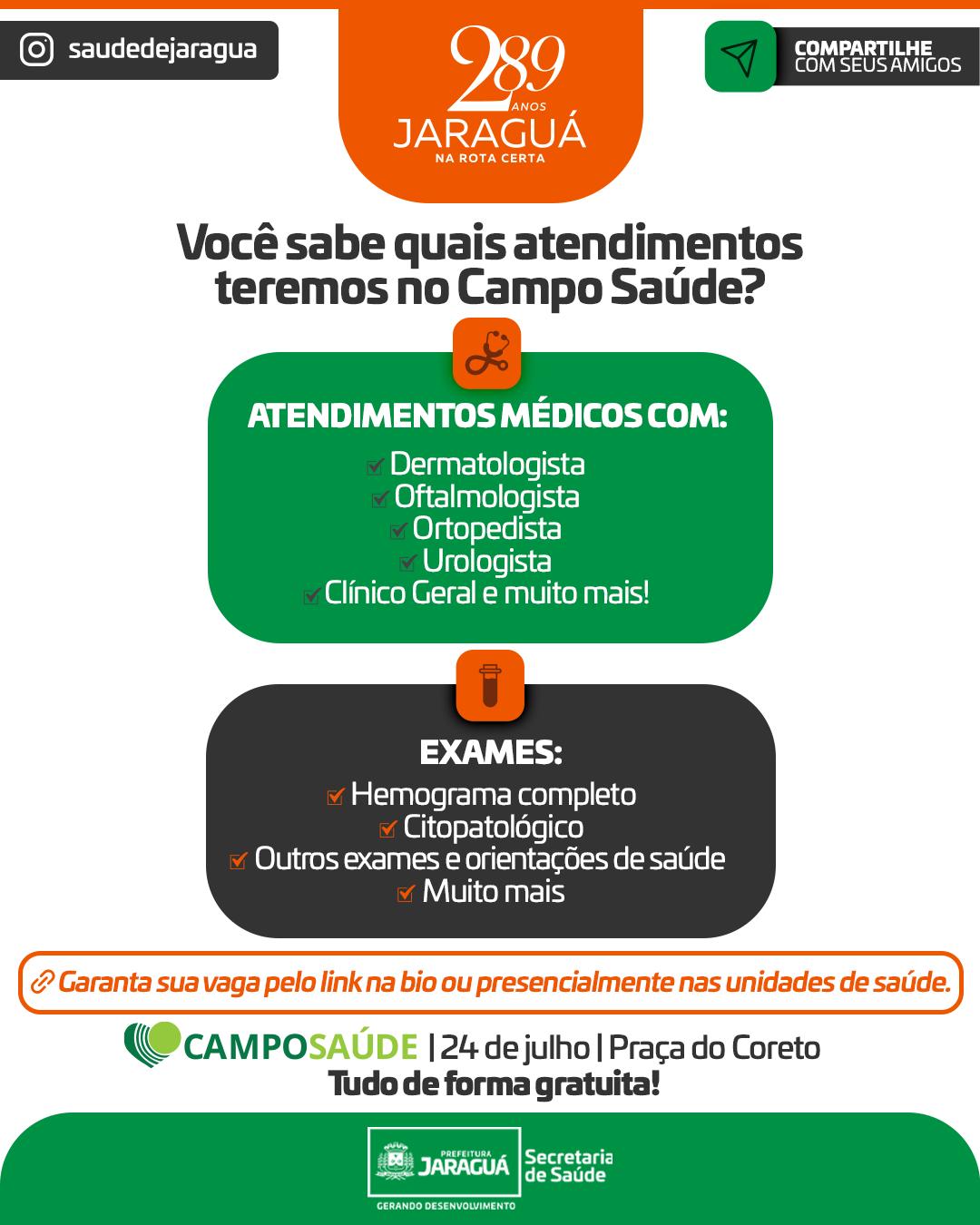 No dia 24 de julho, a Praça do Coreto vai se transformar em um grande centro de cuidado com você e sua família!